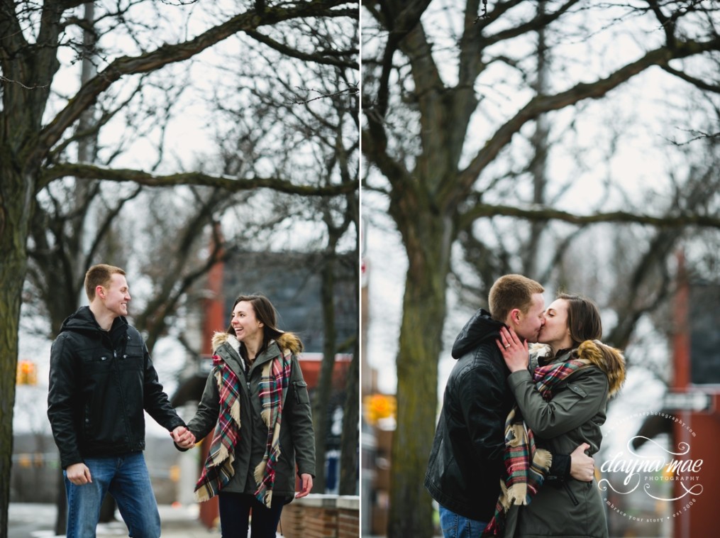 My favorite part of the session just might have been moments before, when we met and I asked them a little about their love. What makes THIER heart beat, how did  they meet, and what were they most excited about for their Winter Michigan Detroit Wedding next December. Ryan told their story in the sweetest way, as he came across Stephanie on social media through another friend – and asked his friend to arrange a group gathering where she would be. It was just Ryan and his one friend, and Stephanie brought several friends, not knowing Ryan arranged the whole thing, just to meet the girl that would 2 years later, take his last name.