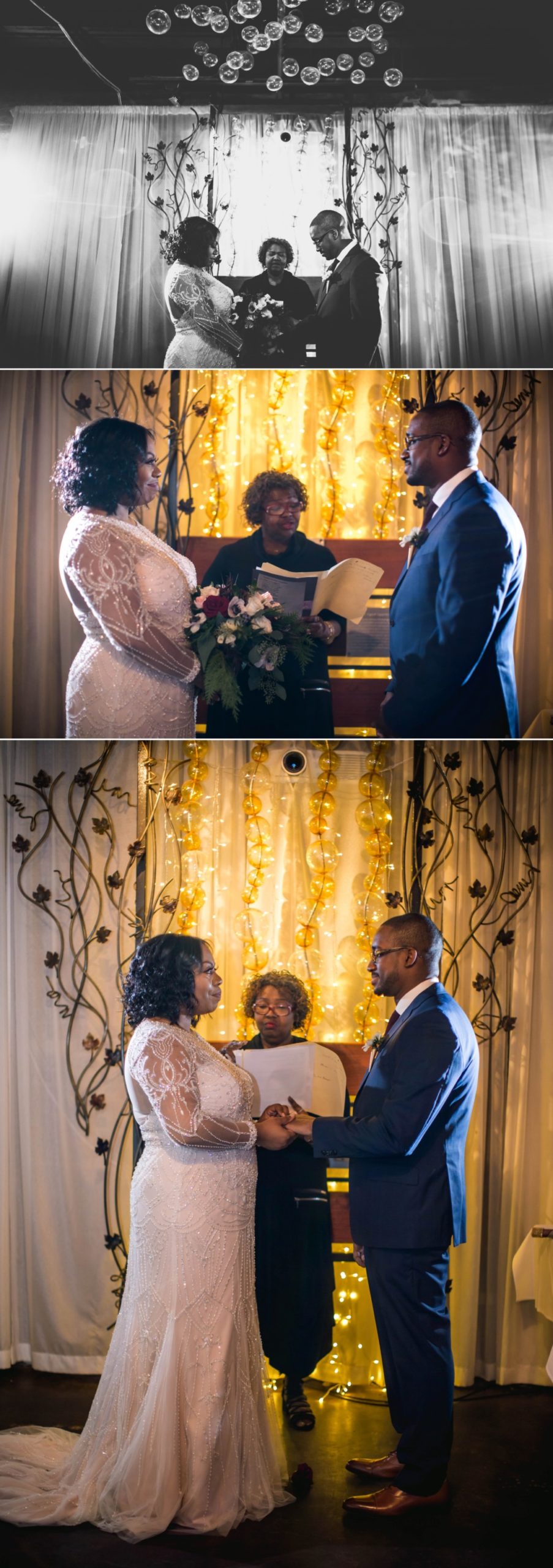 Nikita and Rod’s intimate Downtown Ann Arbor Vinology wedding was magical and romantic. With hues of gold and greenery, mixed with the warmth and ambiance of the Bubble Room at Vinology, this was the perfect intimate wedding downtown Ann Arbor. They came to celebrate their love all the way from Nevada, and said their “I Do’s” on their 10 year dating anniversary! With delicious brunch provided by Vinology, their guests celebrated with toasts, laughter, and a wonderful celebration for Nikita and Rod.