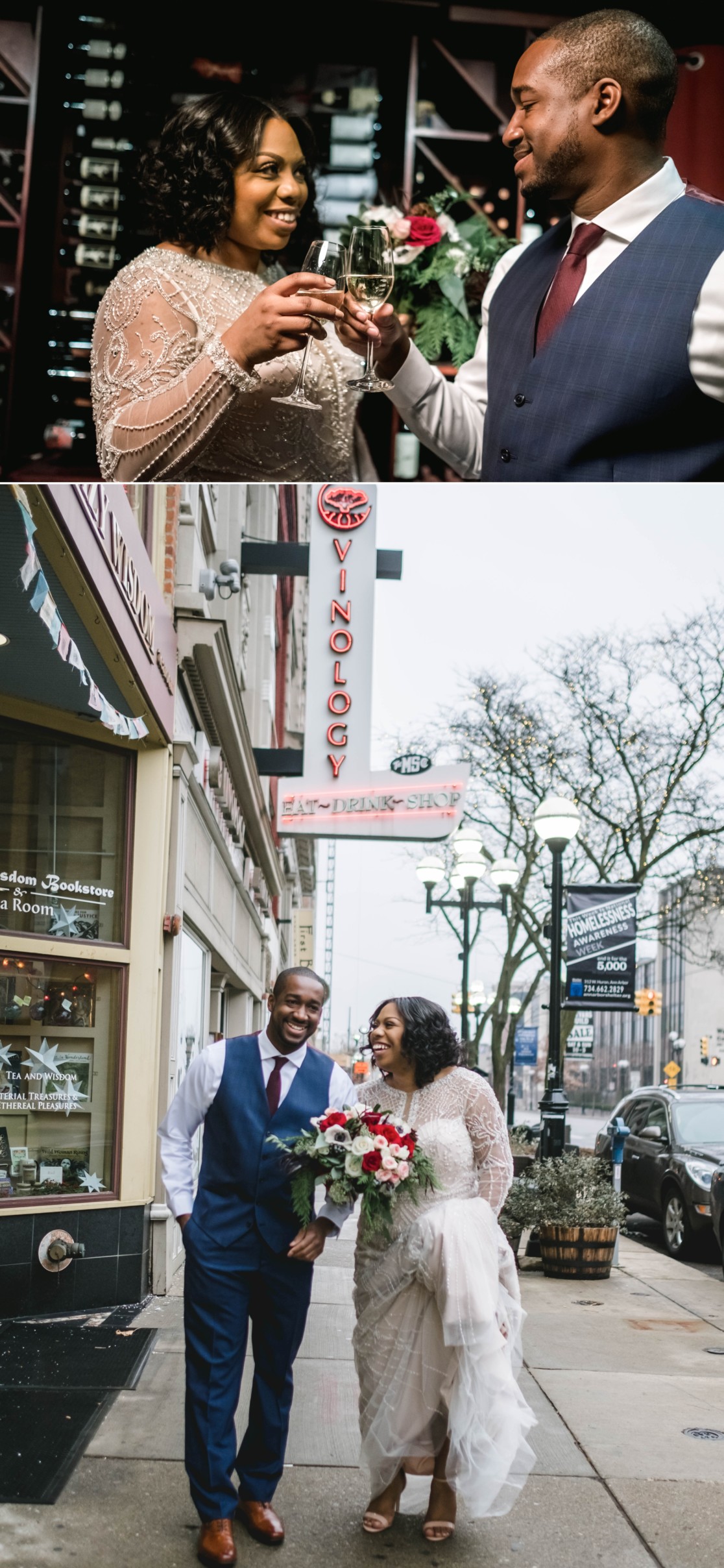 Downtown Ann Arbor Vinology Winter Wedding | Nikita + Rod